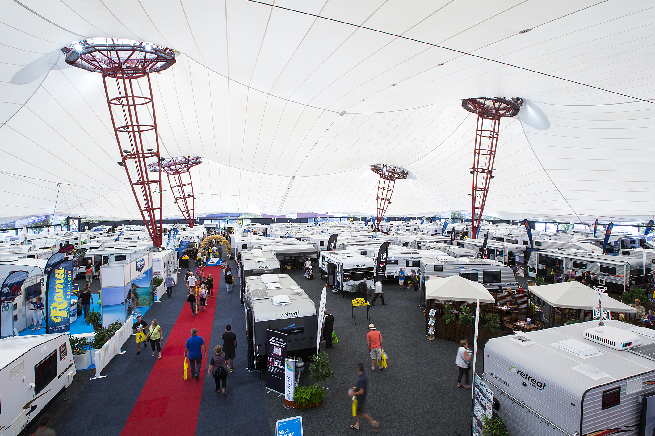 Grand Pavilion is located in the centre of Melbourne Showgrounds. Spanning almost half the area of the MCG’s playing surface – or the equivalent of 30 tennis courts – the sheer size and unique ‘big top’ design will bring a sense of awe and wonderment to your event.